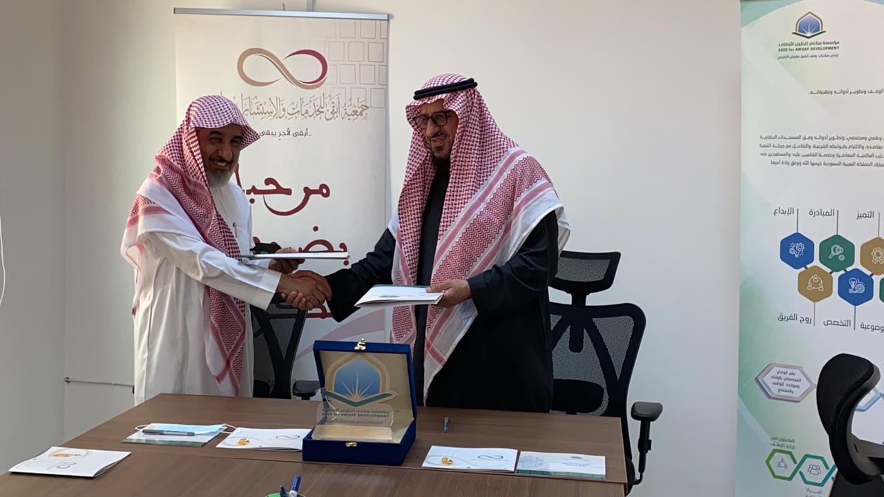 توقيع اتفاقية تشغيل مركز وثيقة للاستشارات الوقفية بين مؤسسة ساعي لتطوير الأوقاف وجمعية أبقى للخدمات والاستشارات الوقفية